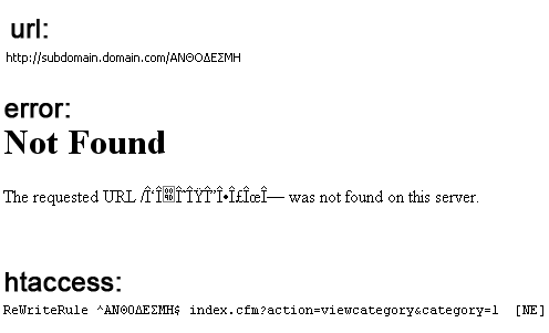 „Kódovanie súboru PHP je WINDOWS-1250.“ Ale požadované URL by se mělo na server posílat (escapované) v UTF-8, takže soubor .htaccess s přepisovacím pravidlem by měl být uložen v kódování UTF-8. |
